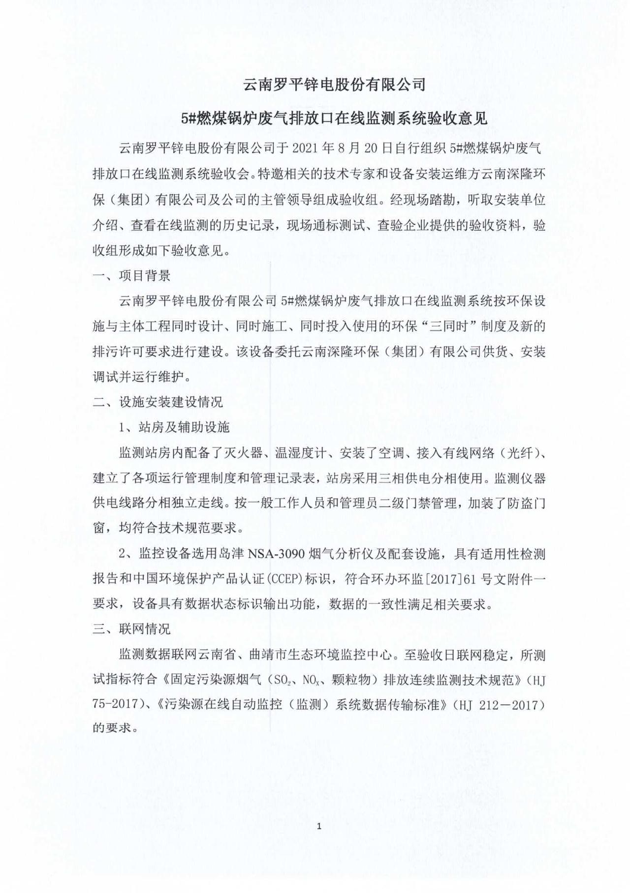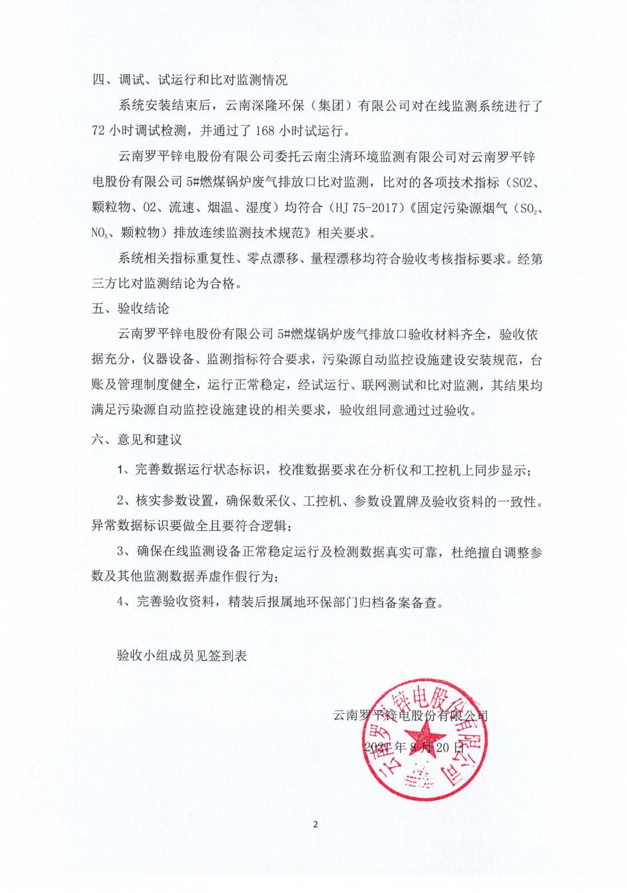 云南羅平鋅電股份有限公司5#燃煤鍋爐廢氣排放口自動(dòng)監(jiān)控系統(tǒng)驗(yàn)收?qǐng)?bào)�?0210820.pdf