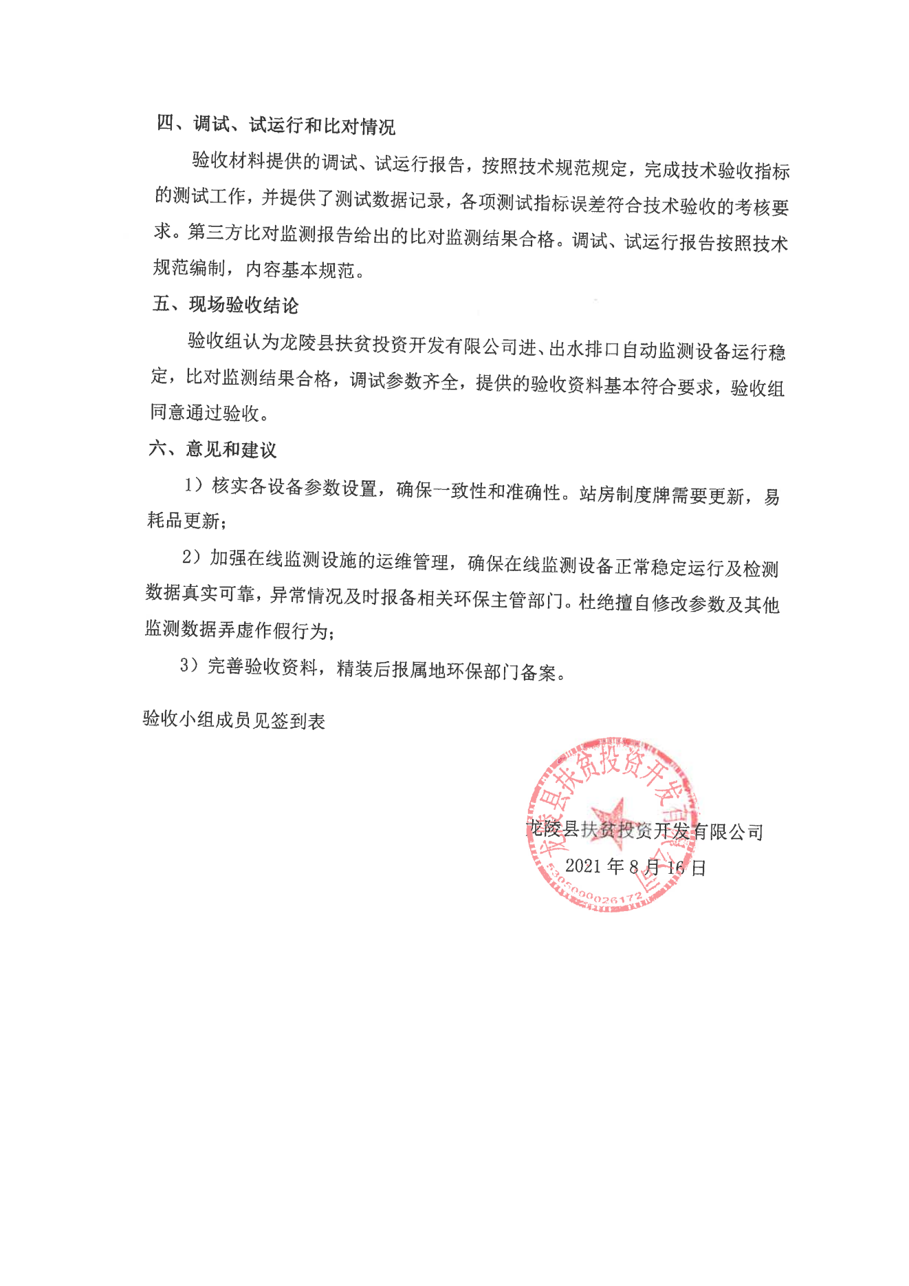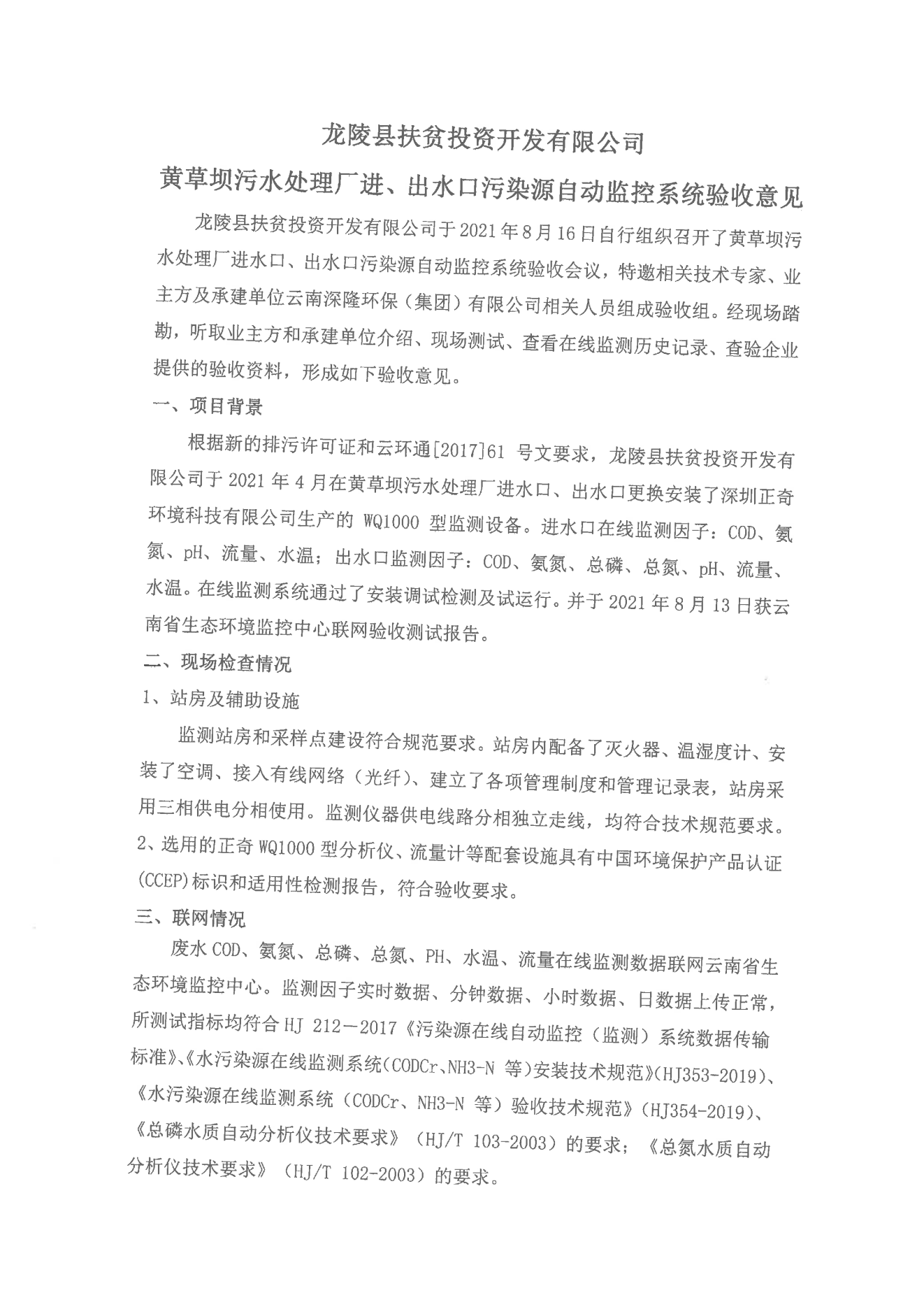 (定稿)龍陵扶貧投資開(kāi)發(fā)有限公司龍陵縣黃草壩水處理廠出水口驗(yàn)收?qǐng)?bào)告.pdf