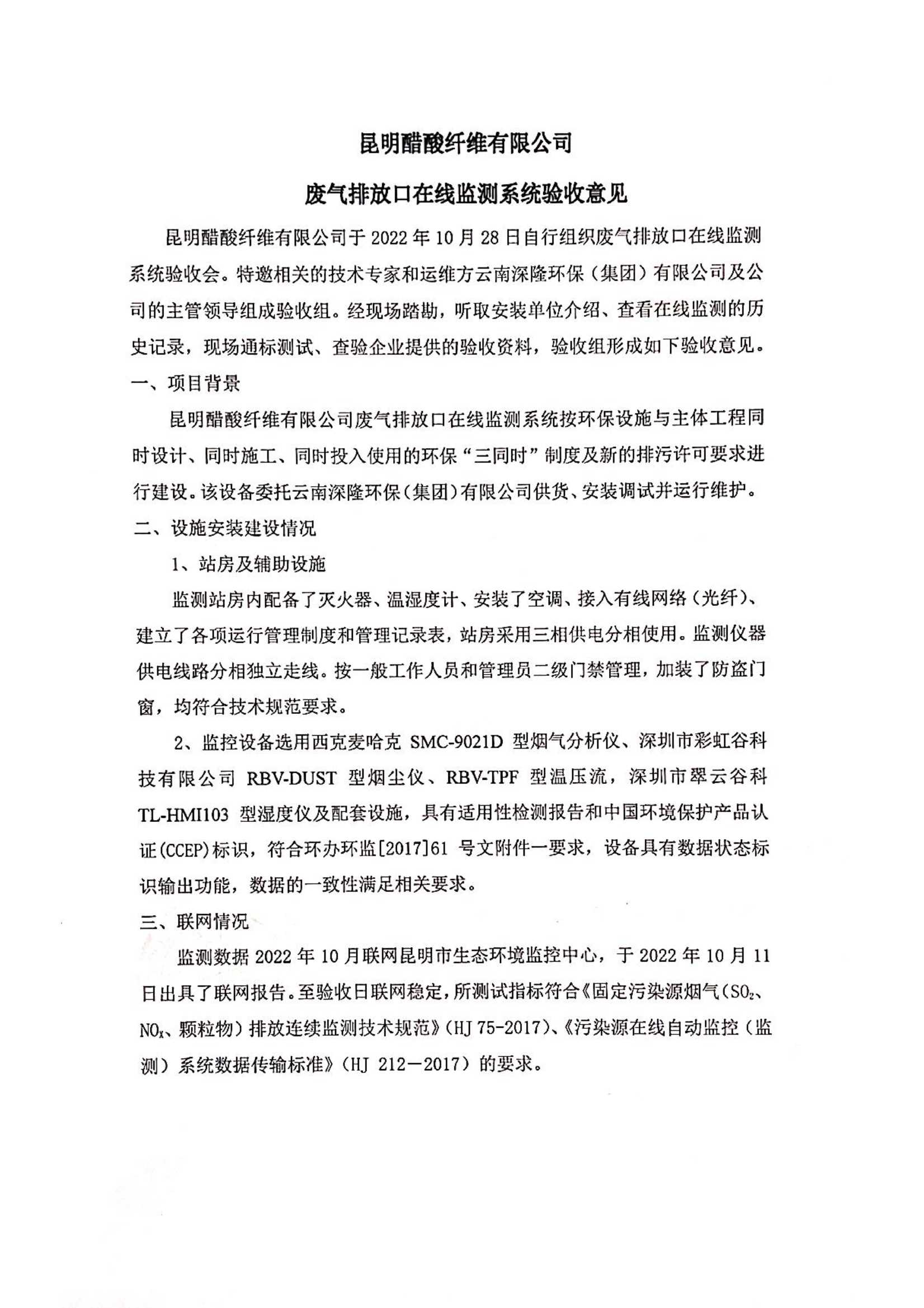 關(guān)于昆明醋酸纖維有限公司煙氣自動監(jiān)測驗收公示(公示時間2022.11.14-11.30)