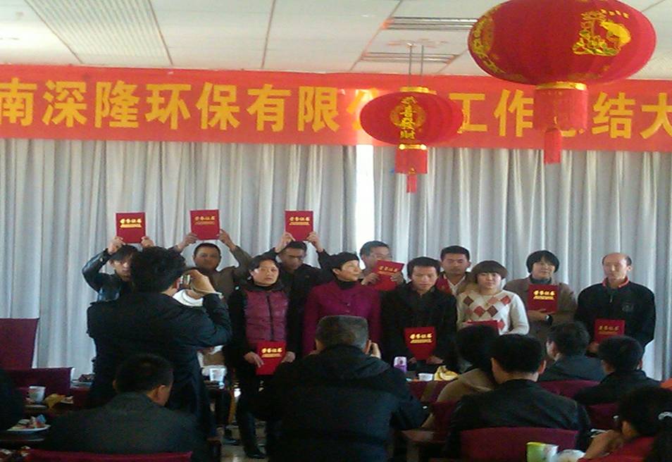 2013年2月6日,云南深隆環(huán)保有限公司在龍森康城召開了公司年終工作總結(jié)大會。除堅守工作崗位的員工外,共有110名員工參加了會議。