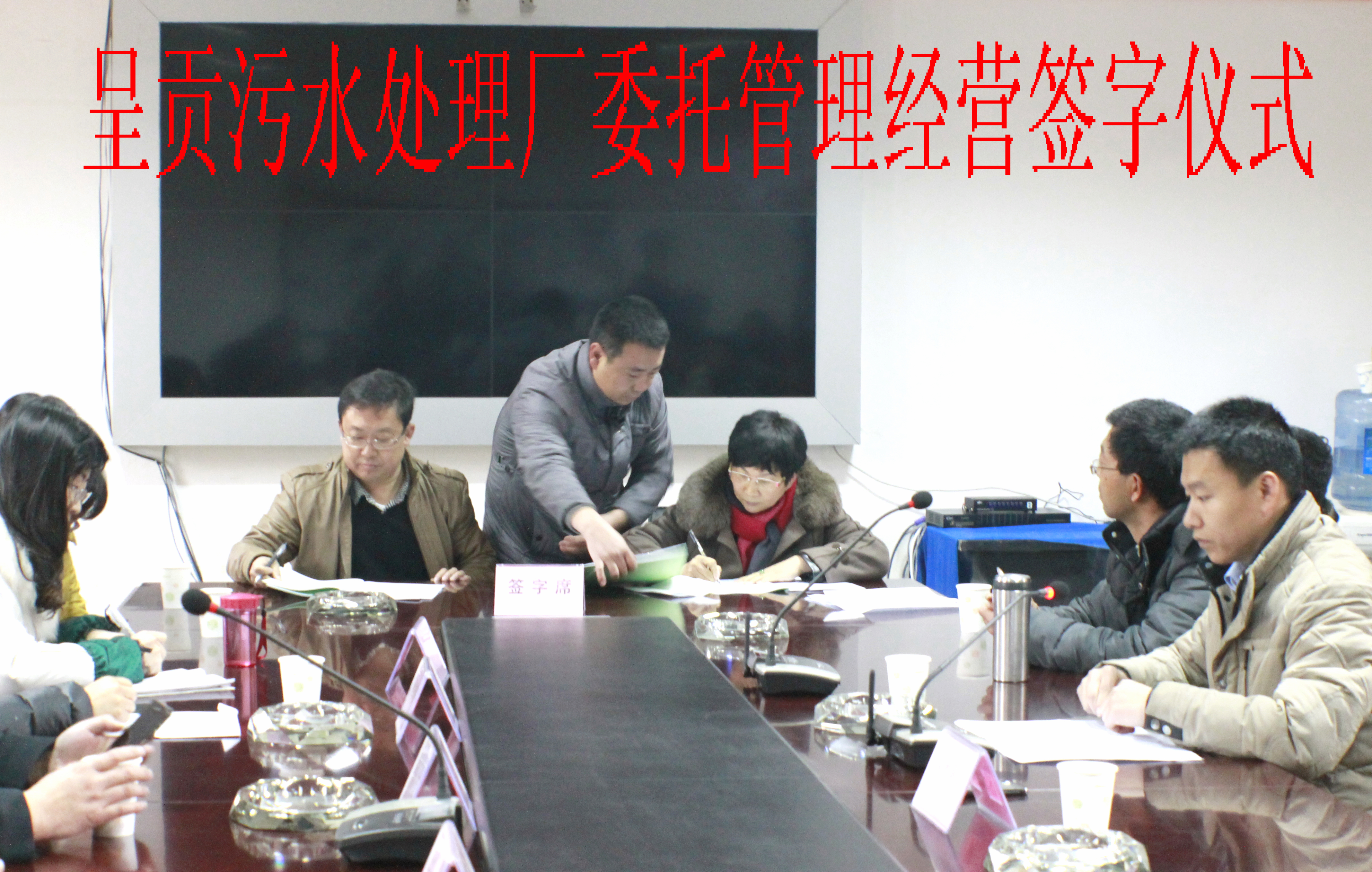 圖二:呈貢污水處理廠(chǎng)委托云南深隆環(huán)保有限公司經(jīng)營(yíng)簽字儀式